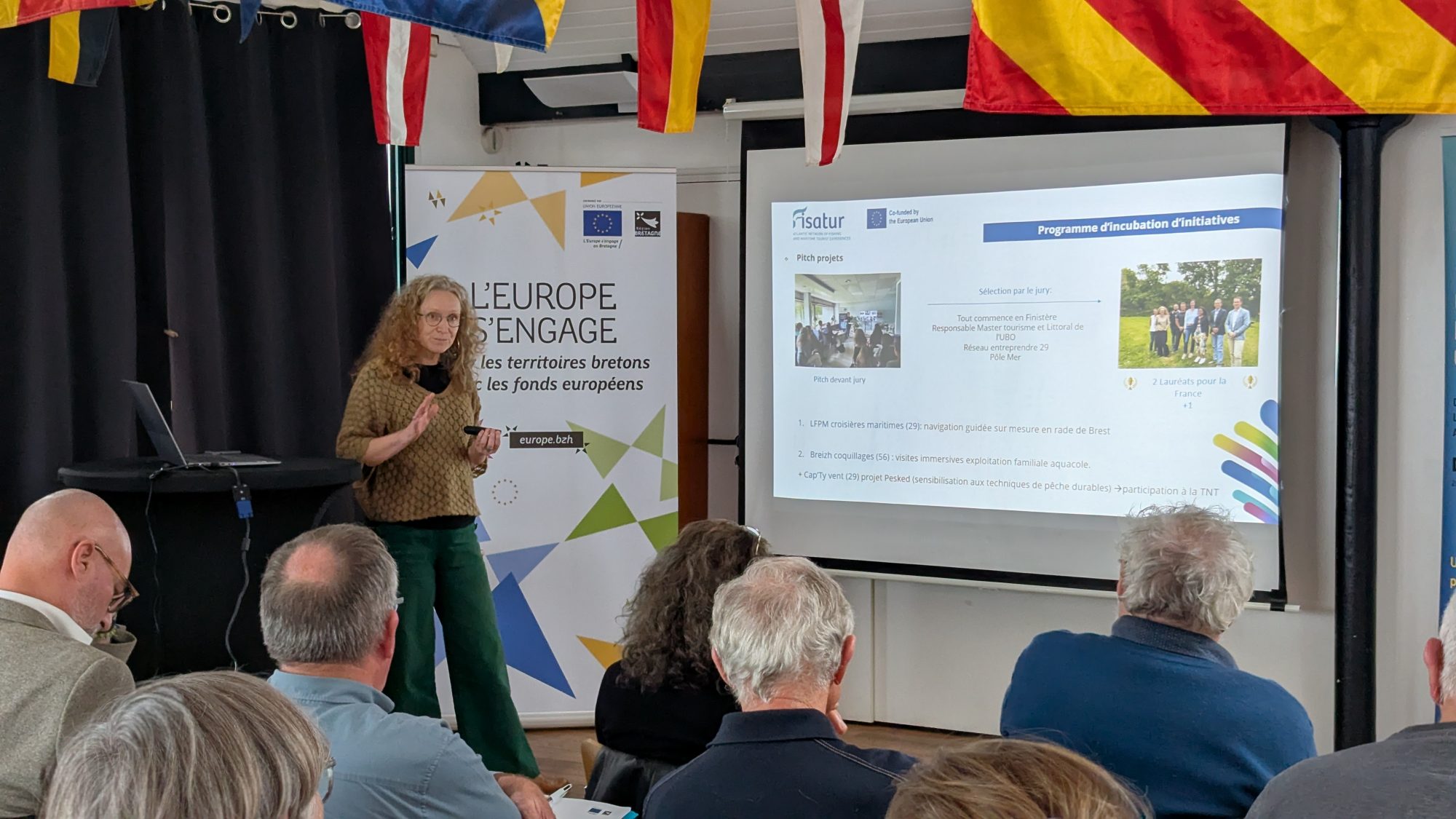 Rozenn Le Vaillant, chargée de mission Europe et innovation à la Technopole Quimper Cornouaille, a présenté trois projets européens auxquels la Technopole est associée :