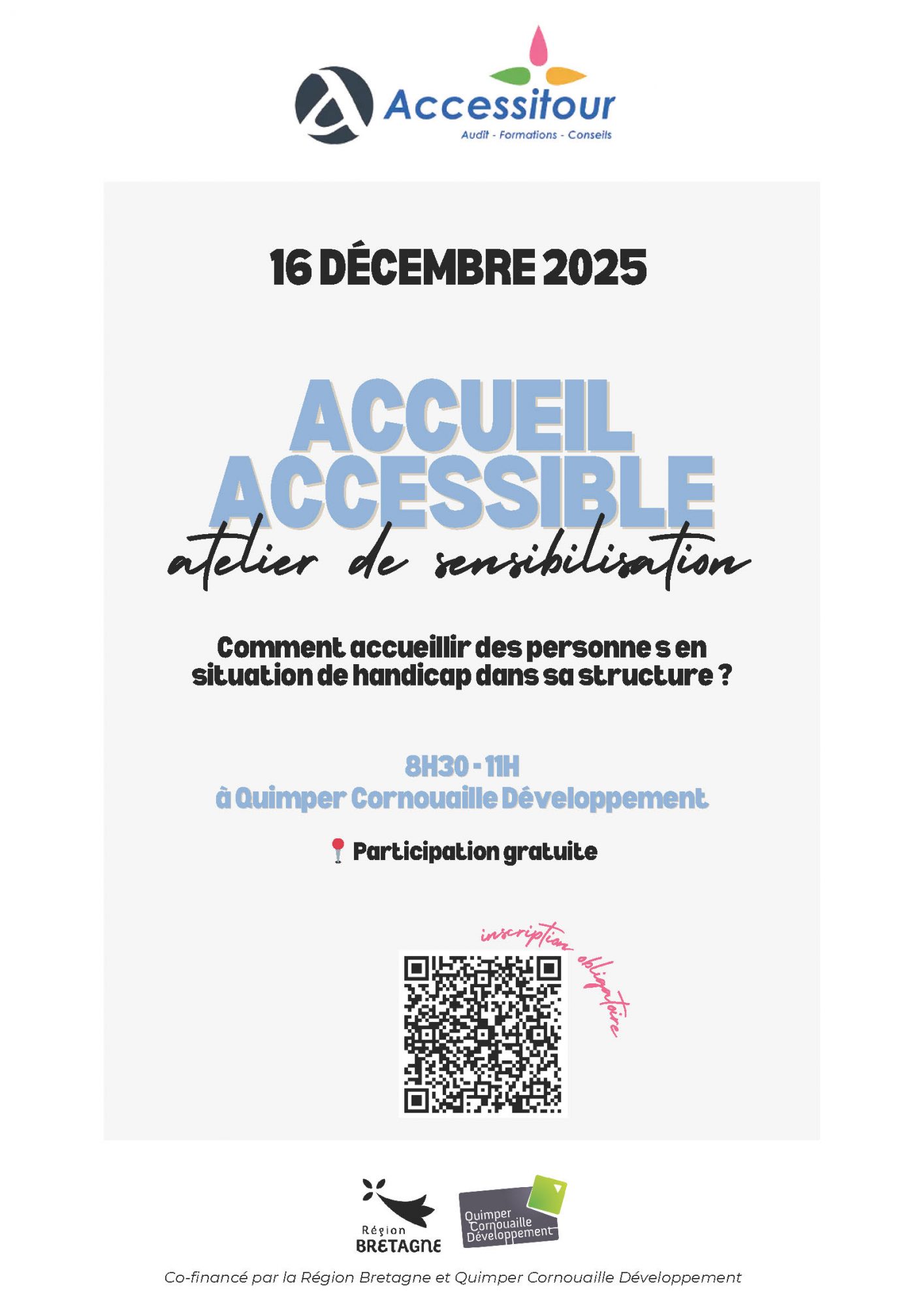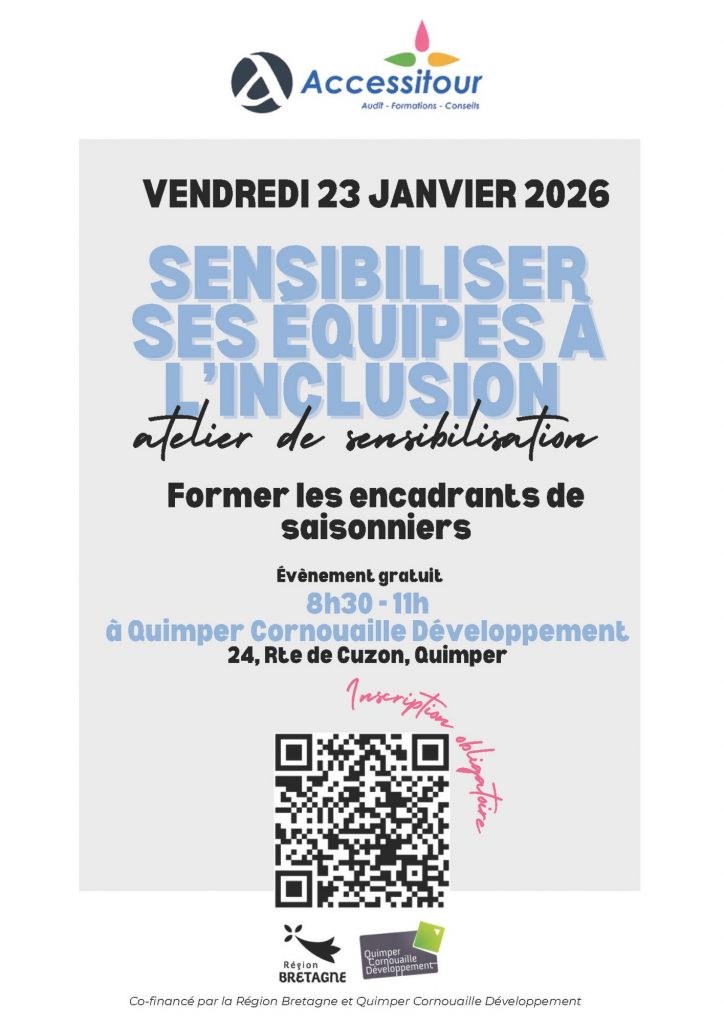 Avec le soutien de la Région Bretagne, Quimper Cornouaille Développement organise une série d’ateliers gratuits pour accompagner les professionnels du tourisme de Cornouaille dans la mise en place de pratiques plus accessibles et inclusives.