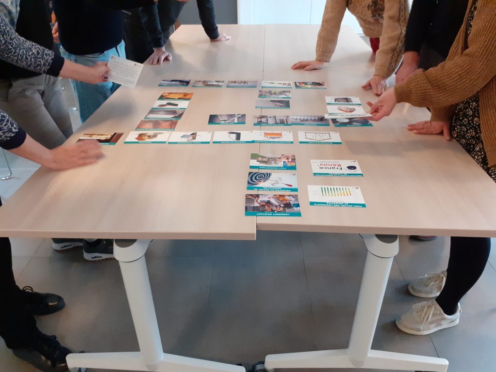 Inspirée de la Fresque du Climat, cet atelier collaboratif et ludique permet, en deux heures et demie, de mieux comprendre les enjeux, les étapes et les interactions d’une rénovation énergétique performante.