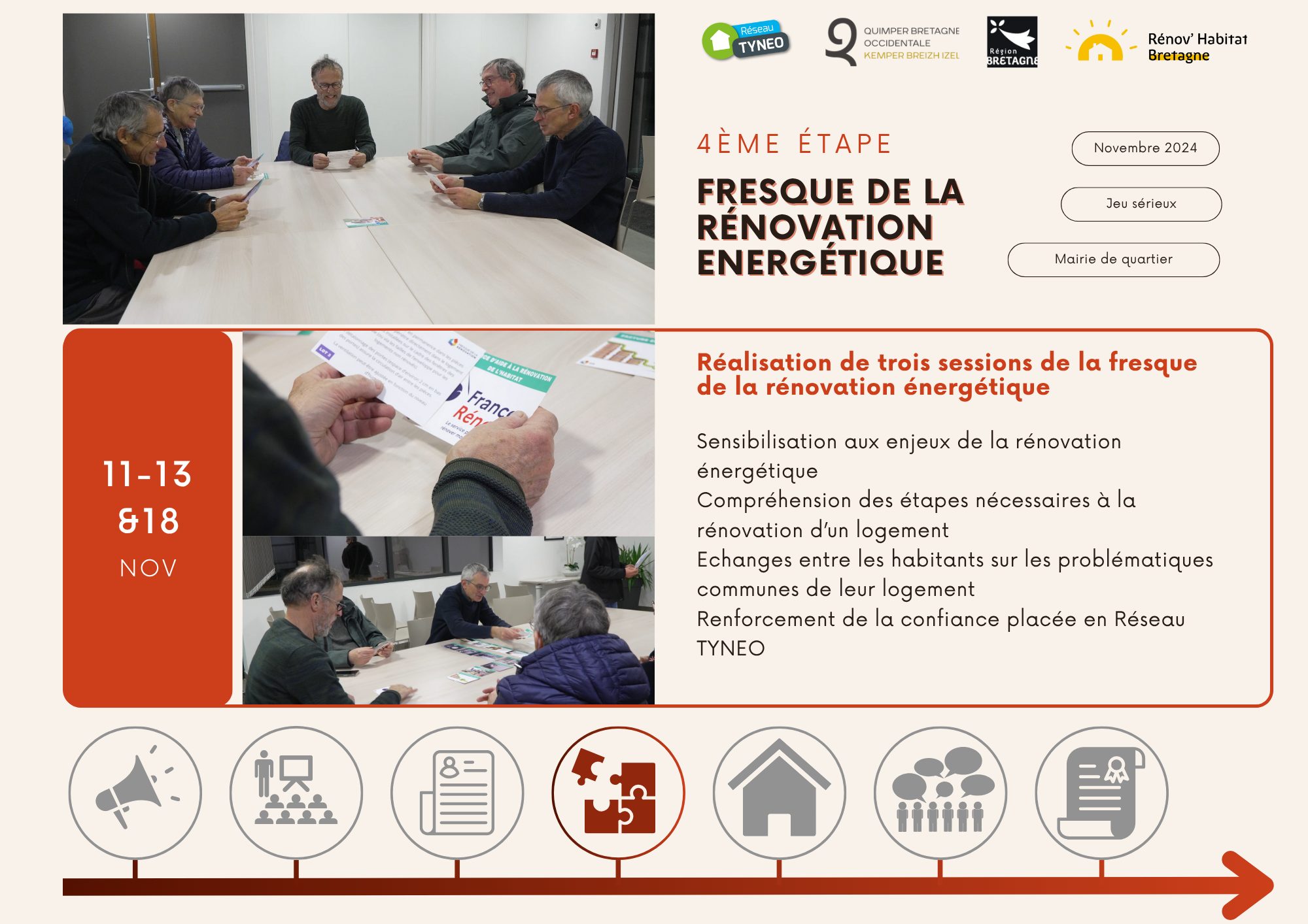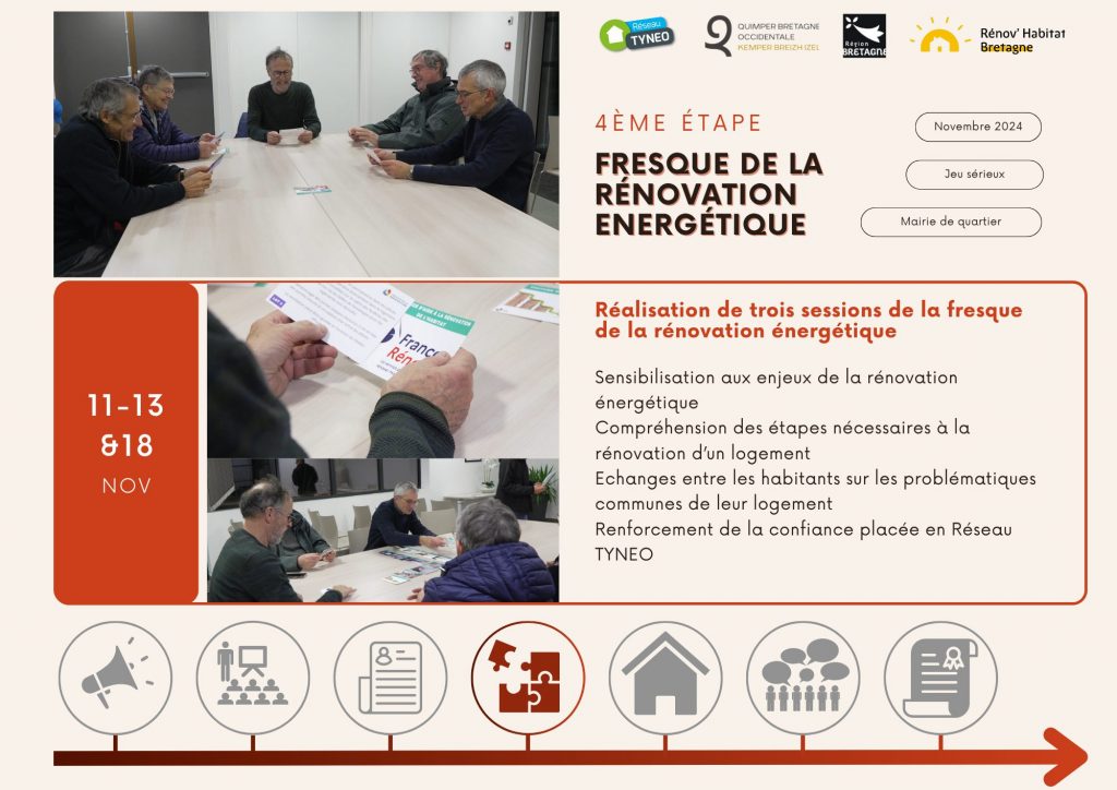 En novembre 2024, les conseillers de Réseau TYNEO ont animé trois sessions de la Fresque de la rénovation énergétique à destination des habitants de Kerfeunteun.