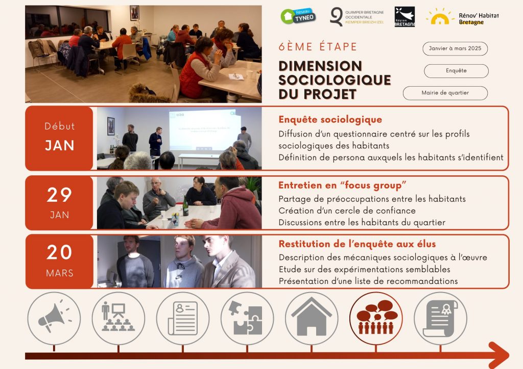 Durant l’hiver 2024-2025, Réseau TYNEO a choisi de s’associer à l’Institut de Géoarchitecture de l’Université de Bretagne Occidentale (UBO) pour enrichir la démarche habitante de Kerfeunteun d’un regard sociologique. Trois étudiants en master 2 ont ainsi conduit, d’octobre à mars, une étude de terrain visant à mieux comprendre comment impliquer les habitants d’un même quartier dans une dynamique de rénovation collective.