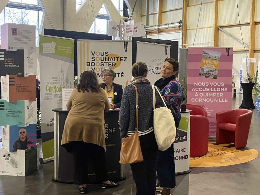 Sur le stand de Quimper Cornouaille Développement, 30 visiteurs ont été accueillis, parmi lesquels de nombreux professionnels RH, dirigeants et recruteurs. L’équipe attractivité a présenté les dispositifs conçus pour attirer, intégrer et fidéliser de nouveaux actifs cornouaillais :