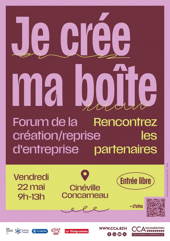 Organisé par le Pôle développement économique de Concarneau Cornouaille Agglomération, le Forum création et reprise d’entreprise constitue, depuis plus de quinze ans, un temps fort de l’animation économique du territoire. Il rassemble chaque année de nombreux partenaires institutionnels, réseaux professionnels et acteurs de l’accompagnement, mobilisés pour favoriser l’émergence et la structuration de projets entrepreneuriaux en Cornouaille.